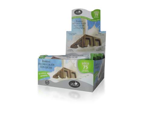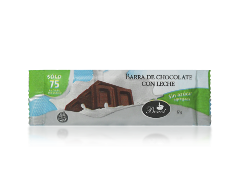 Barra de chocolate con leche dietético reducido en su contenido glucídico libre de gluten. Barra de chocolate con leche bajo valor glucidico .Sin TACC
